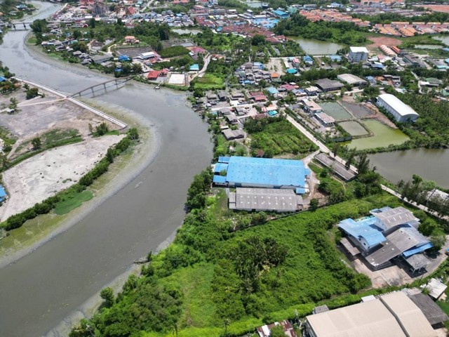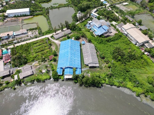ขายที่ดินสวยริมน้ำ พร้อมโกดัง บ้านริมน้ำ และห้องแถว บางกระเจ้า พระราม2 สมุทรสาคร