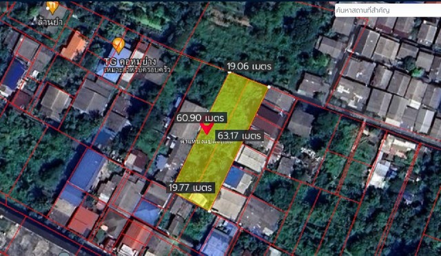 พื้นที่ : 300 ตร.วา (หน้ากว้าง 19.75 เมตร , ลึก 63 เมตร)